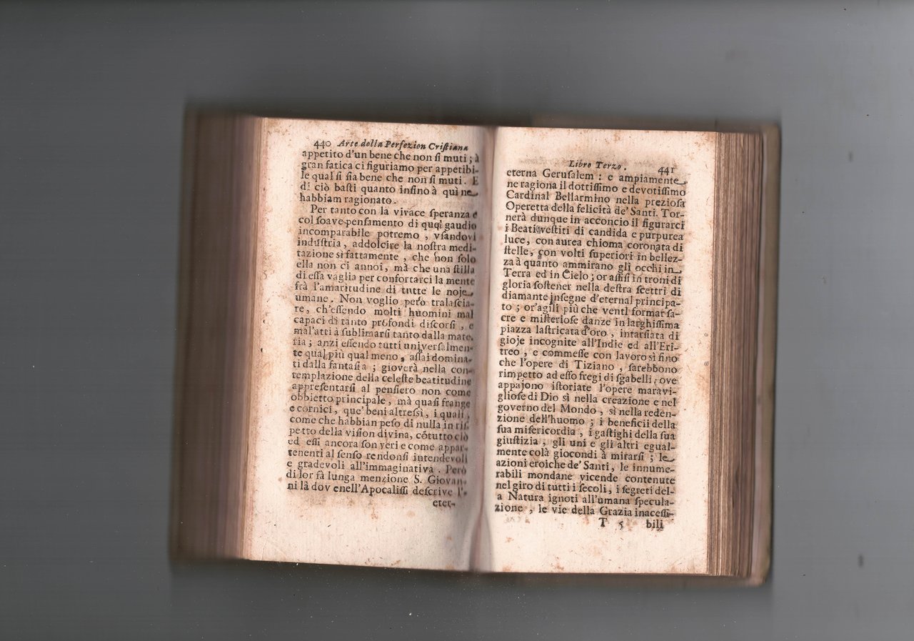 In 24°, p. perg. , cc. nn. 8 + pp. 602 + cc. nn. 3. Antichi forellini che interessano alcune parole.