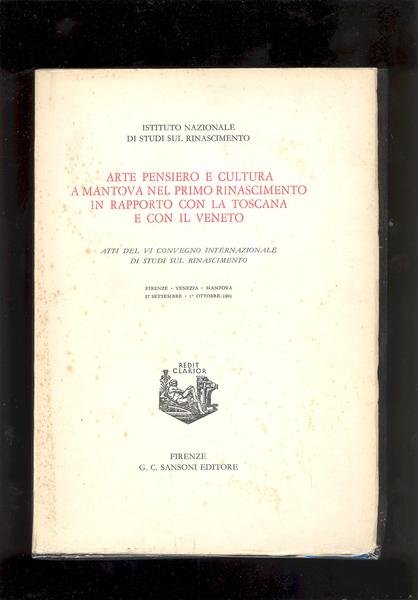 IN8°, pp.257. COPERTINA EDITORIALE CON TITOLO IN ROSSO. VOLUME A CURA DELL'ISTITUTO NAZIONALE DI STUDI SUL RINASCIMENTO., FONDAZIONE GIORGIO CINI, COMITATO MANTOVANO PER LA MOSTRA DI MANTEGNA. FIRENZE - VENEZIA - MANTOVA, 27 SETTEMBRE - 1° OTTOBRE 1961. IL COMITATO PROMOTORE, ERA COMPOSTO DA: MARIO SALMI, EUGENIO GARIN, FRANCESCO CARNELUTTI, VITTORIO BRANCA, LUIGI GRIGATO, GIOVANNI PACCAGNINI, PIER GIORGIO RICCI. TAVV. LXXX f.t. in b/n.DI CUI LE ULTIME 3 + v.r.<BR>OTTIMA CONSERVAZIONE, INTONSO. ID 5622