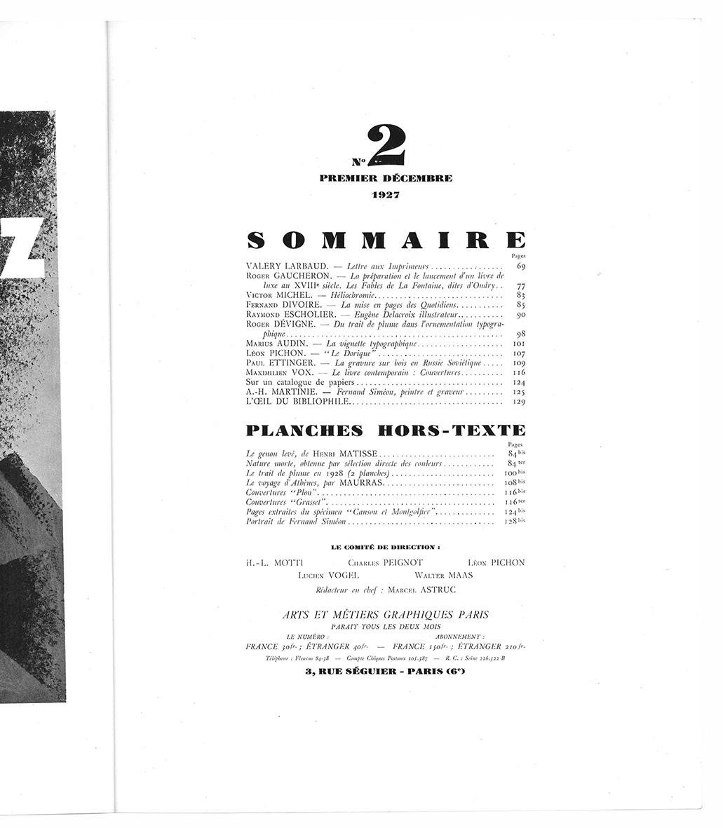 Arts et Métiers Graphiques Paris n.2 décembre 1927. Office De Livres Du Crapouillot Éditions Originales et De Luxe.