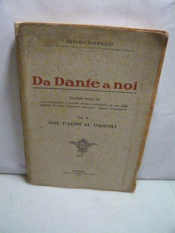 Arturo Pompeati,DA DANTE A NOI,Vol II - Da Parini al Pascoli,Vannini ed. 1926