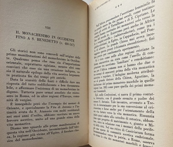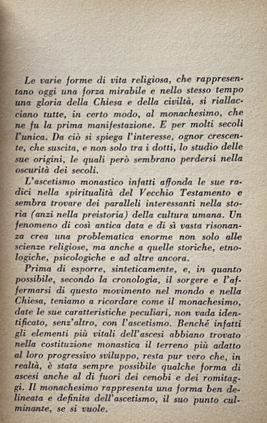 Le varie forme di vita religiosa, che rappresentano oggi una forza mirabile e nello stesso tempo una gloria della Chiesa e della civiltà, si riallacciano tutte, in certo modo, al monachesimo, che ne fu la prima manifestazione. E per molti secoli l'unica. Da ciò si spiega l'interesse, ognor crescente, che suscita, e non solo tra i dotti, lo studio delle sue origini, le quali però sembrano perdersi nella oscurità dei secoli.
