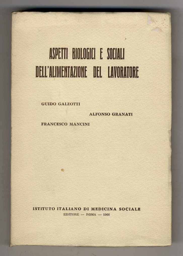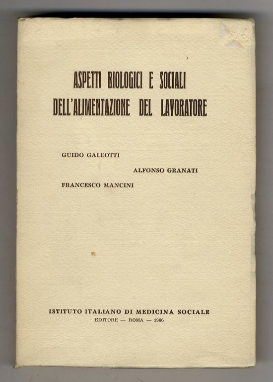 Roma, Istituto Italiano di Medicina Sociale, 1966, in-8 grande, br. editoriale, pp. XVII, [1], 382. Con grafici n.t. e illustrazioni su tavole f.t. Ottimo esemplare. che reca l'invio autografo di Guido Galeotti al prof. Livio Livi.