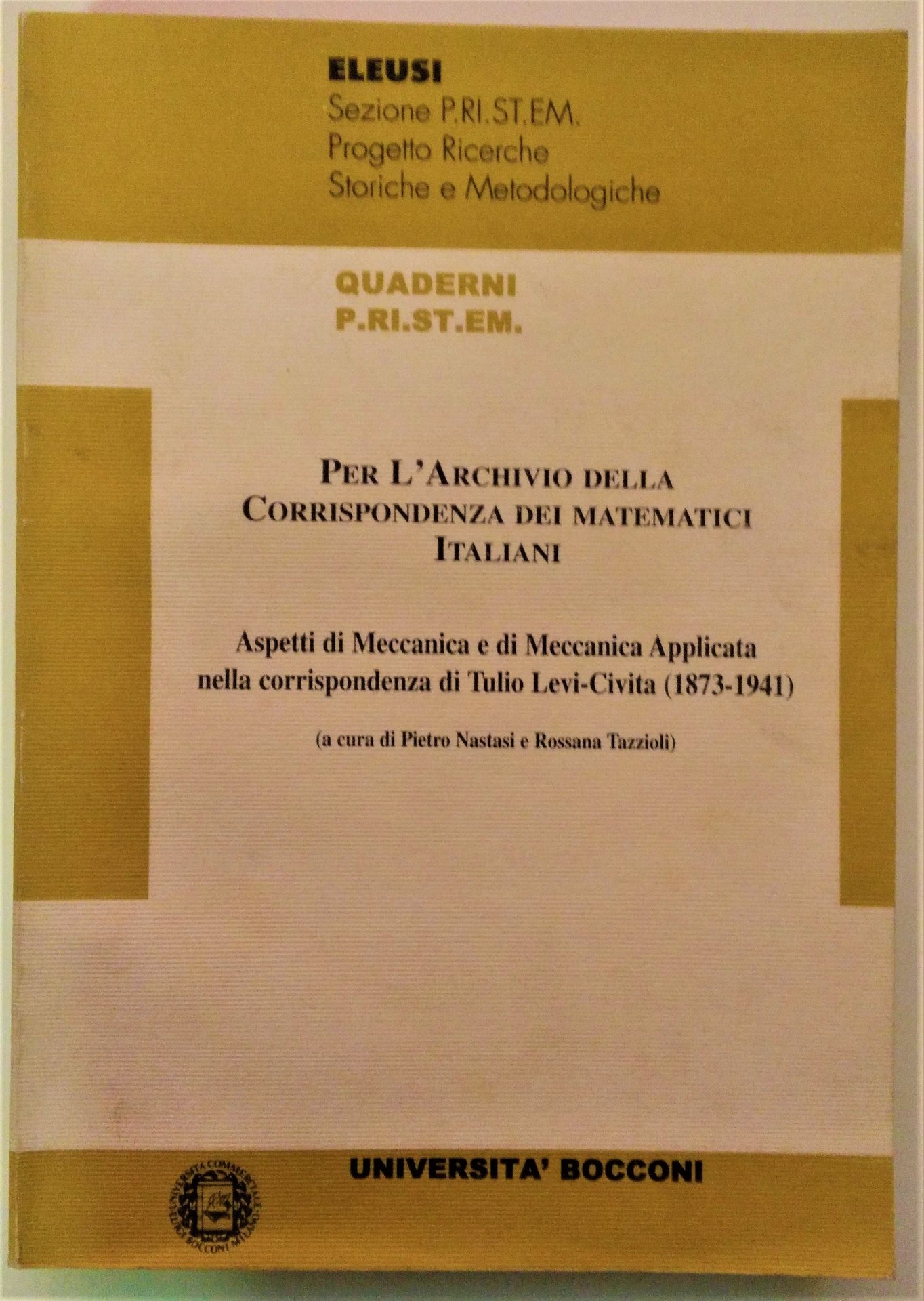 Aspetti di Meccanica e di Meccanica Applicata nella corrispondenza di Tullio Levi-Civita (1873-1941). ( A cura di Pietro Nastasie Rossana Tazzioli ). In appendice lettere di C. Agostinelli, T. Boggio, C. Burali-Forti, L. Opatowski.