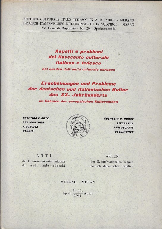Aspetti e problemi del Novecento culturale italiano e tedesco nel quadro dell'unità culturale europea : atti del 2. Convegno internazionale di studi italo-tedeschi : Merano, 5-11 aprile 1961
