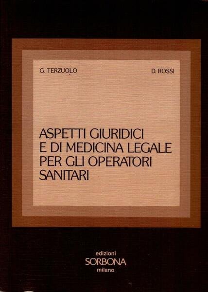 "Aspetti giuridici e di medicina legale per operatori sanitari", edizione giugno 1988, pp. 233, formato 17 x 24.