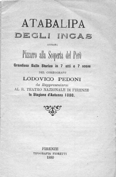 Grandioso ballo storico in 7 atti. Teatro Nazionale di Firenze, Autunno 1880. Elenco dei personaggi completo dei nomi degli interpreti.