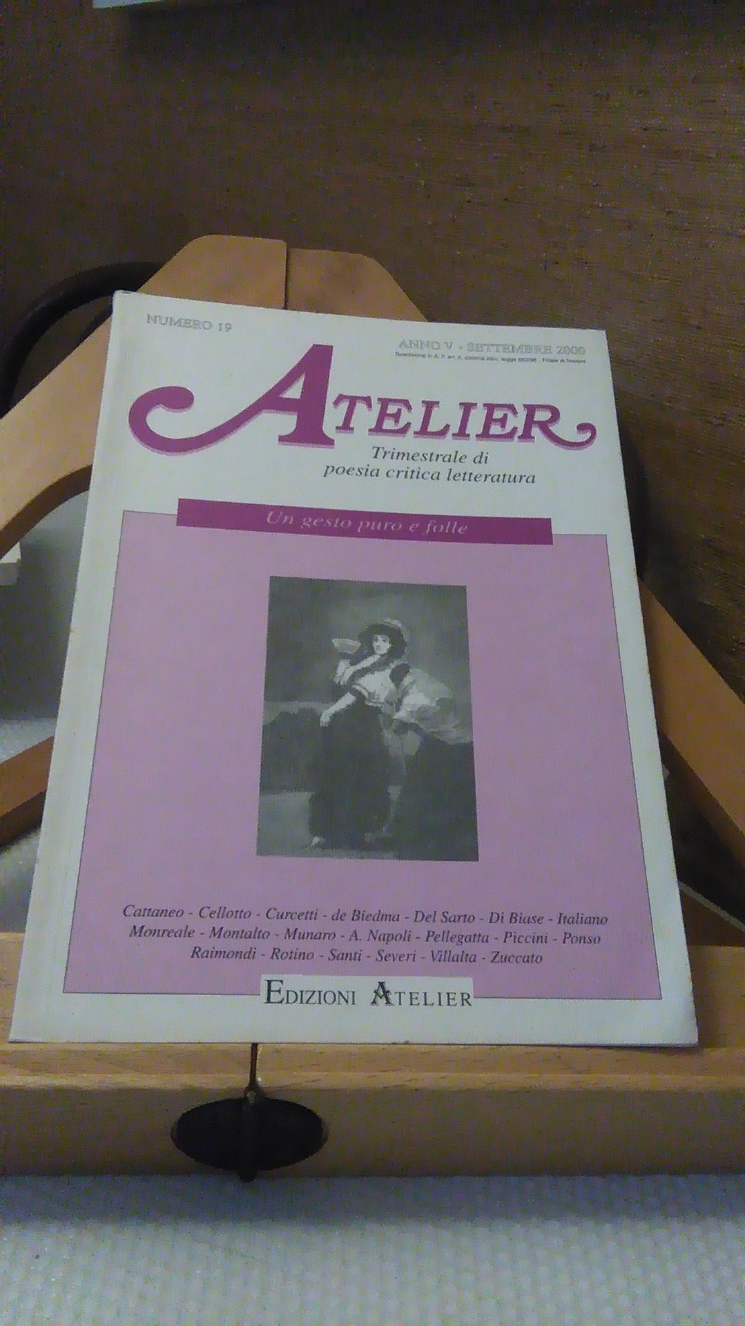ATELIER. TRIMESTRALE DI POESIA E CRITICA LETTERARIA. UN GESTO PURO E FOLLE. NUMERO 19 ANNO V SETTEMBRE 2000
