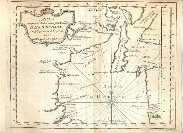 Atlante dell'America contenente le migliori carte geografiche: Carta rappresentante una parte della baja d'Hudson e le Regioni a Maestro dell'America Settentrionale.