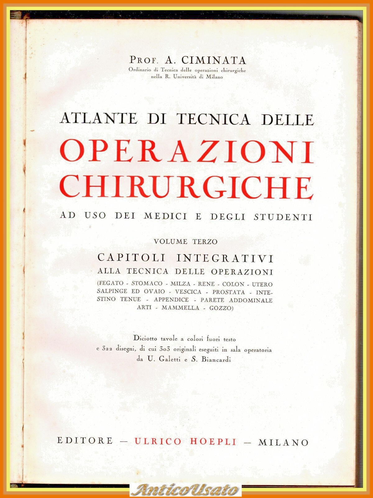 ATLANTE TECNICA OPERAZIONI CHIRURGICHE volume 3 di A Ciminata 1939 Hoepli Libro