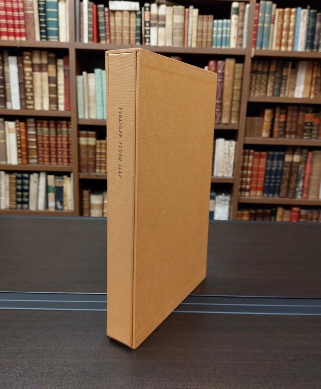 <span style="font-style: normal;">In-4° (cm. 29), pagine XVIII [2] 140 [14] con 1 tavola illustrativa fuori testo (riproduzione di un rame di Giovanni Wierx), stampa in carattere Tallone, tiratura su carta appositamente fabbricata per questa edizione dalle manifatture Miliani di Fabriano. Brossura editoriale a risvolti, titolo in </span><i>bleu foncé</i> al piatto e al dorso, camicia e cofanetto in tela di colore ocra scuro. Nuova traduzione dal testo critico greco stabilito da A. Merk. Cfr. Pellizzari 124. Ottimo esemplare allo stato di nuovo.