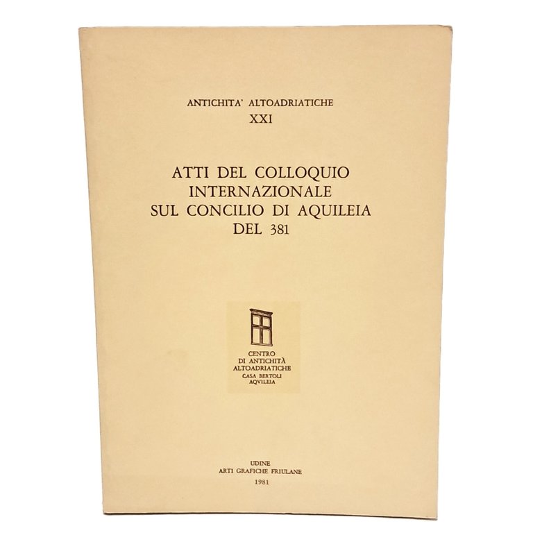 PRIMA EDIZIONE, atti della giornata di studi aquileiesi dal 6 al 7 maggio 1981; Volume numero 21 delle Antichità Altoadriatiche. Contiene contributi di studiosi diversi sul concilio di Aquileia del 381: M.G. Mara, Bibbia e storia nel IV secolo; R. Gryson, Les sources relatives au Concile d’Aquilée de 381; G. Corti, Lo sfondo ambrosiano del Concilio di Aquileia; Y.-M. Duval, Le sens des débats d’Aquilée pour les Nicéens. Nicée Rimini Aquilée; E. Peretto, L’autorità della scrittura nel dibattito del Concilio; J. Doignon, Palladius - Ambroise ou l’affrontement de l’école et de la philosophie; R. Gryson, La position des ariens au Concile d’Aquilée; S. Tavano, Una pagina degli Scolia Ariani. La sede e il clima del concilio; L. Prosdocimi, Epilogo. In brossura. Pp. 169. Ottime condizioni.