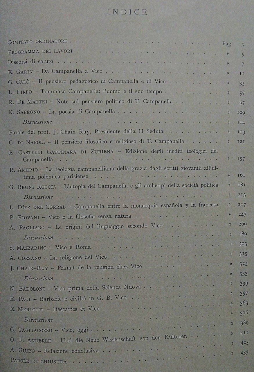 Atti Del Convegno Internazionale Sul Tema Campanella e Vico. Roma 12-15 maggio 1968.