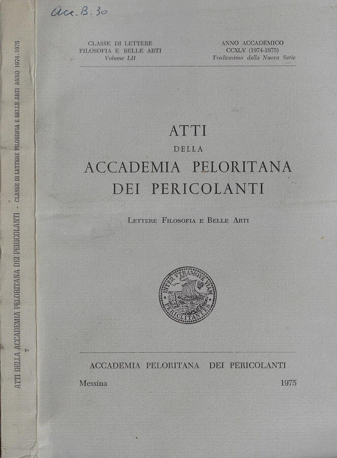 Atti della Accademia Peloritana dei pericolanti Classe di lettere, filosofia e belle arti Volume LII