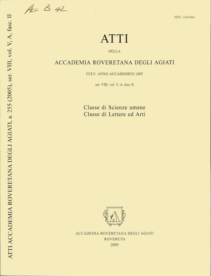 - Atti della Accademia Roveretana degli Agiati - Classe di Scienze Umane - Classe di Lettere ed Arti
