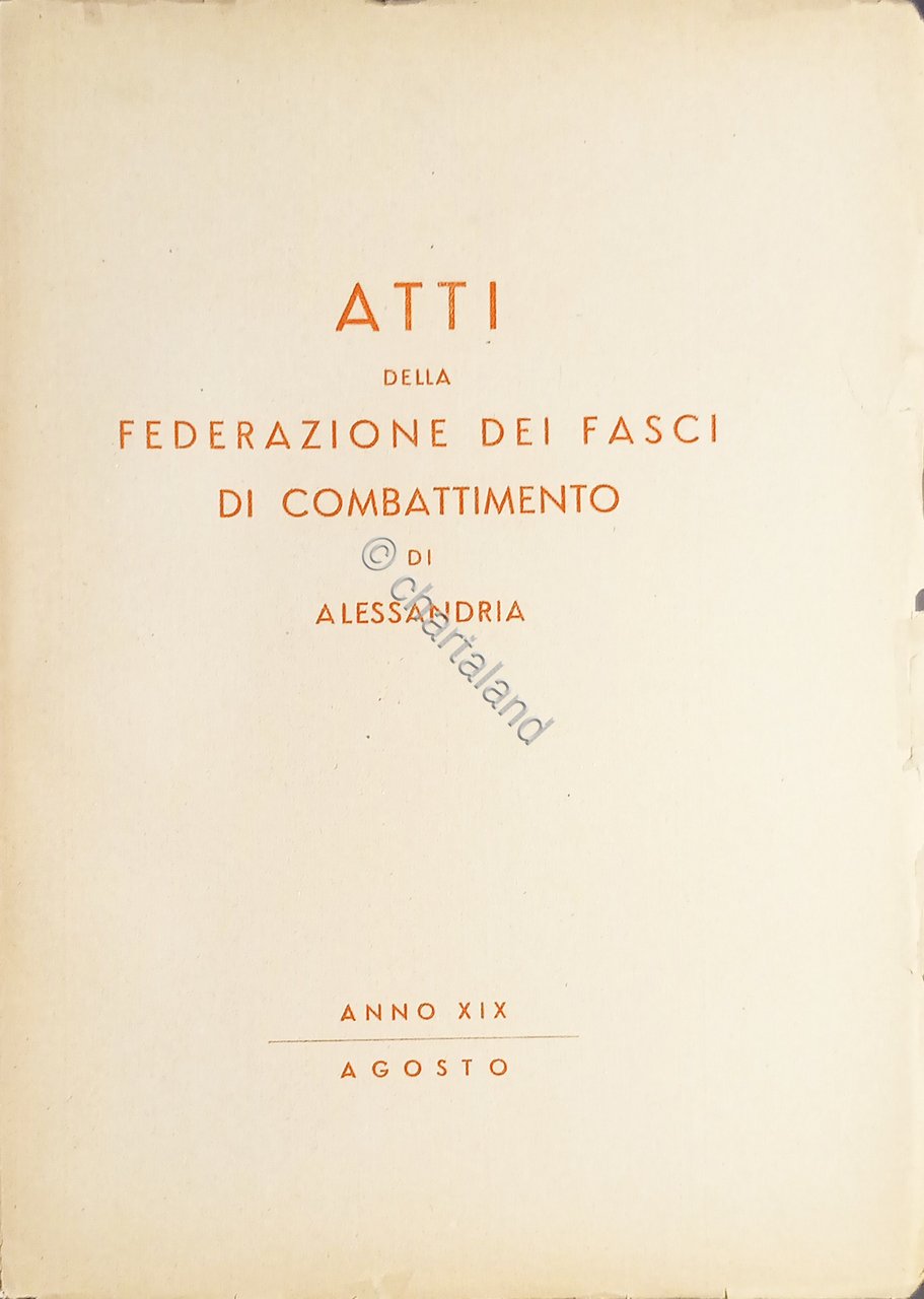 Atti della federazione dei Fasci di Combattimento di Alessandria - Agosto 1941 Testo in lingua italiana. Pagine 110 Condizioni molto buone.