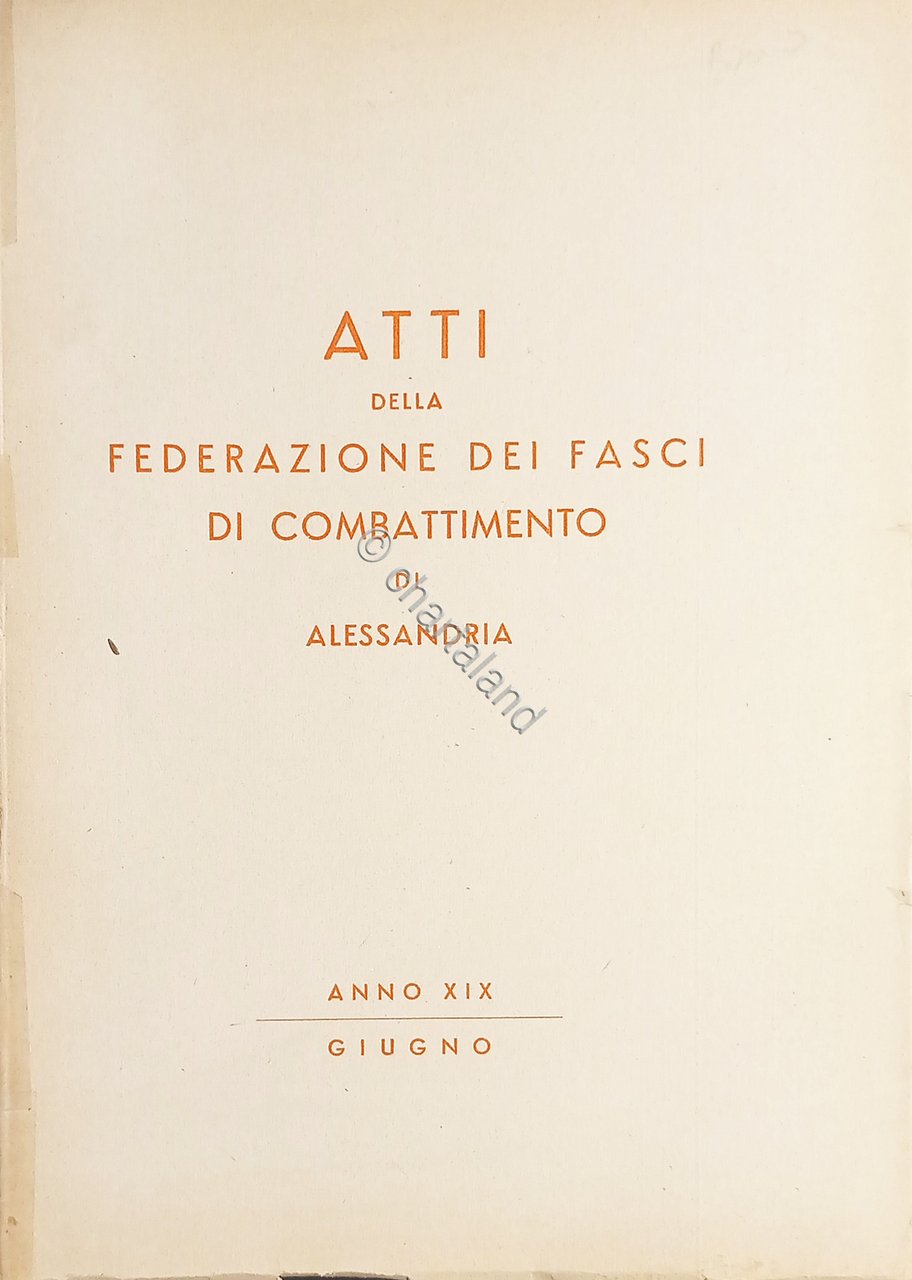 Atti della federazione dei Fasci di Combattimento di Alessandria - Giugno 1941 Testo in lingua italiana. Pagine 79 Condizioni molto buone.