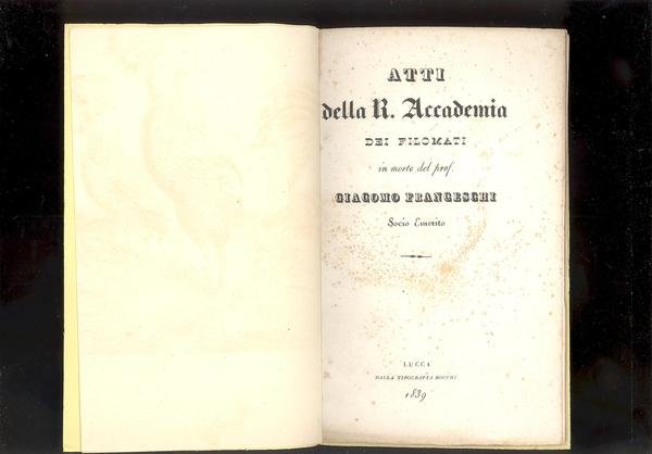 ATTI DELLA R. ACCADEMIA DEI FILOMATI <BR>IN MORTE DEL PROF. GIACOMO FRANCESCHI SOCIO EMERITO