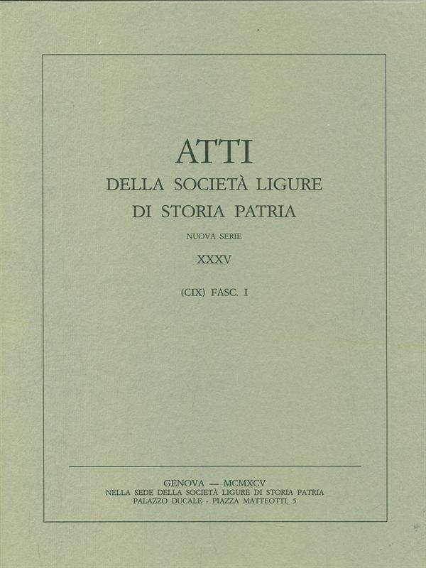 Atti della societa ligure di storia patria vol XXXV Fasc I