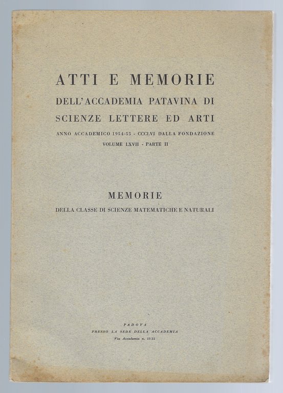 Atti e memorie dell'Accademia Patavina di Scienze Lettere ed Arti. Volume LXVII - Parte II. Memorie della classe di scienze matematiche e naturali.