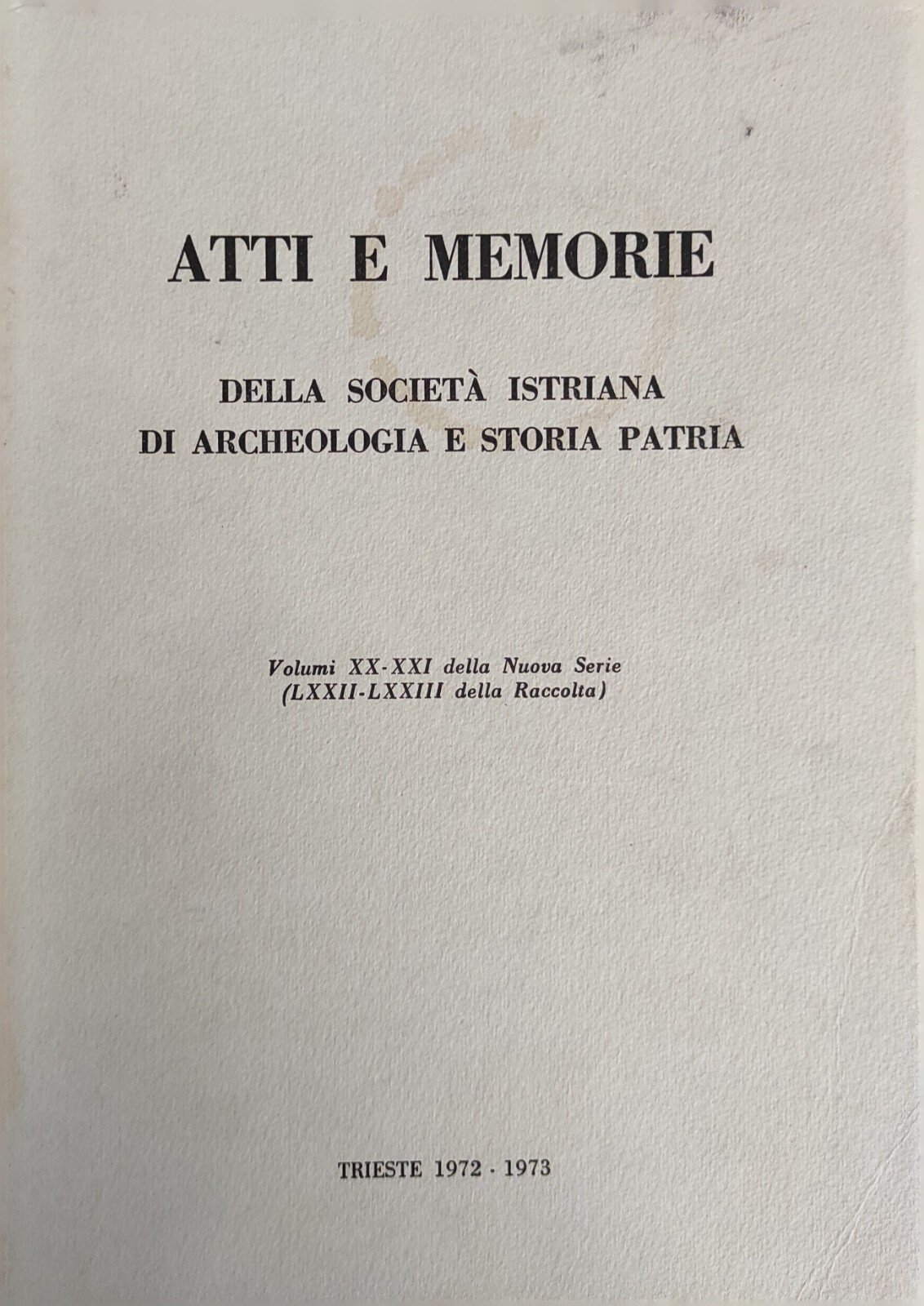 ATTI E MEMORIE DELLA SOCIETÀ ISTRIANA DI ARCHEOLOGIA E STORIA PATRIA