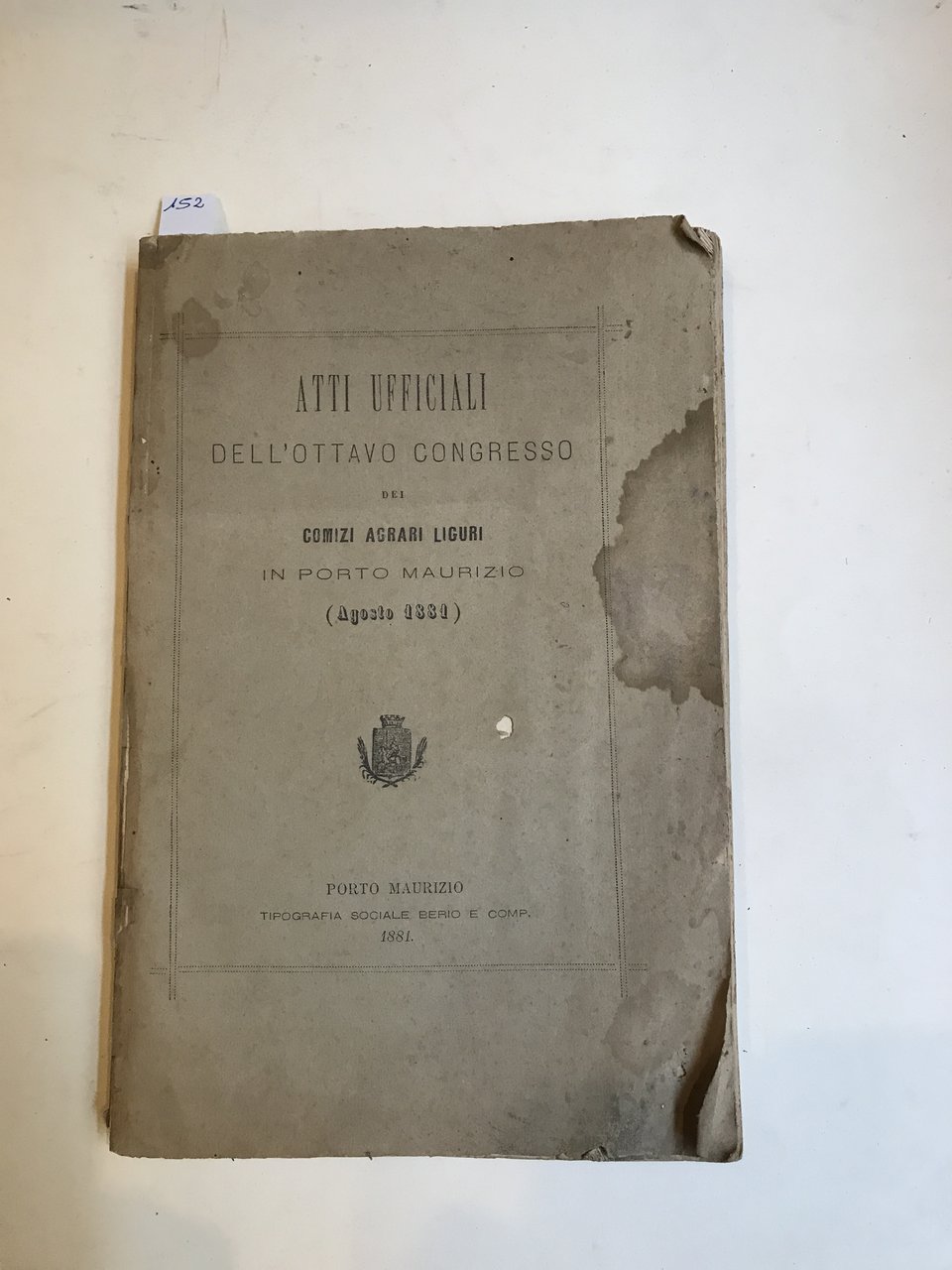 Atti ufficiali dell'ottavo congresso dei Comizi agrari liguri in Porto Maurizio. Agosto 1881