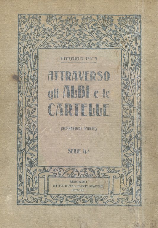 Bergamo, Istituto Italiano d'Arti Grafiche, 1907, in-8, tela editoriale (copertine interne in cartoncino illustrato a colori da Mataloni), pp. 322. Con 385 illustrazioni in b.n. e 27 inquadrature, testate ed iniziali di: Allan, Baruffi, Chahine, Dudovich, Ensor, La Bella, Macchiati, Maréchal, Martini, Meunier, Rassenfosse, Zilcken. Difettose le cerniere interne dei piatti e la parte superiore del dorso.