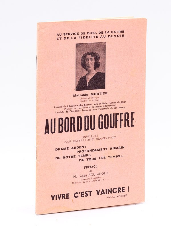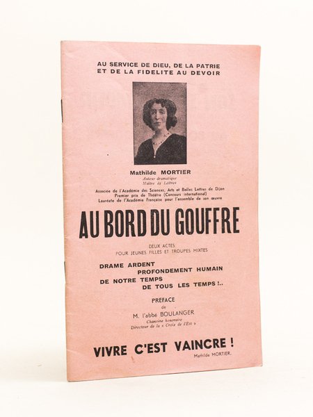 Préface de M. l'abbé Boulanger, 1 brochure in-8, Imp. Vagner, Nancy, s.d. [ 1950 ], 48 pp. Bon état. "Au bord du gouffre" fut représenté pour la première fois à Dijon, le 11 juillet 1950.