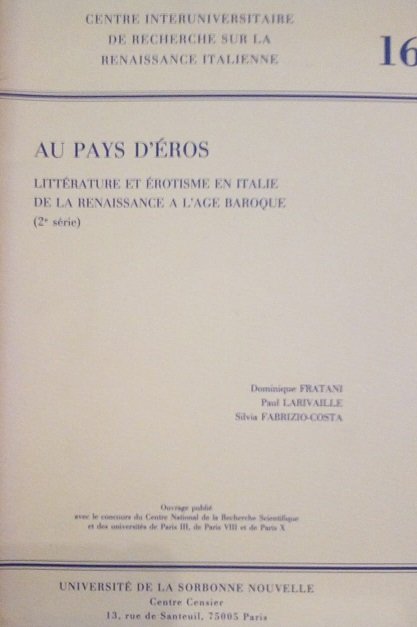 AU PAYS D'EROS - LITTERATURE ET EROTISME EN ITALIE DE LA RENAISSANCE A L'AGE BAROQUE (2A SERIE)