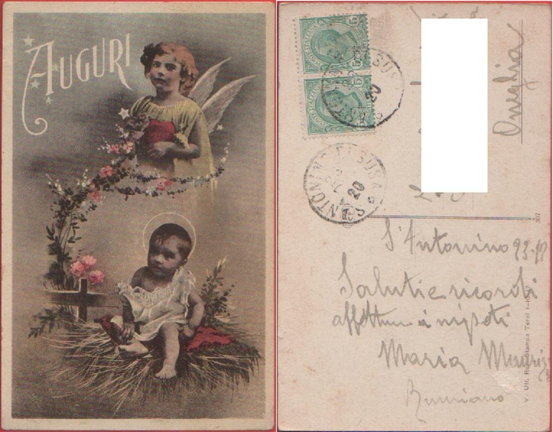 Auguri. Angelo e Gesù Bambino. Viaggiata 1920