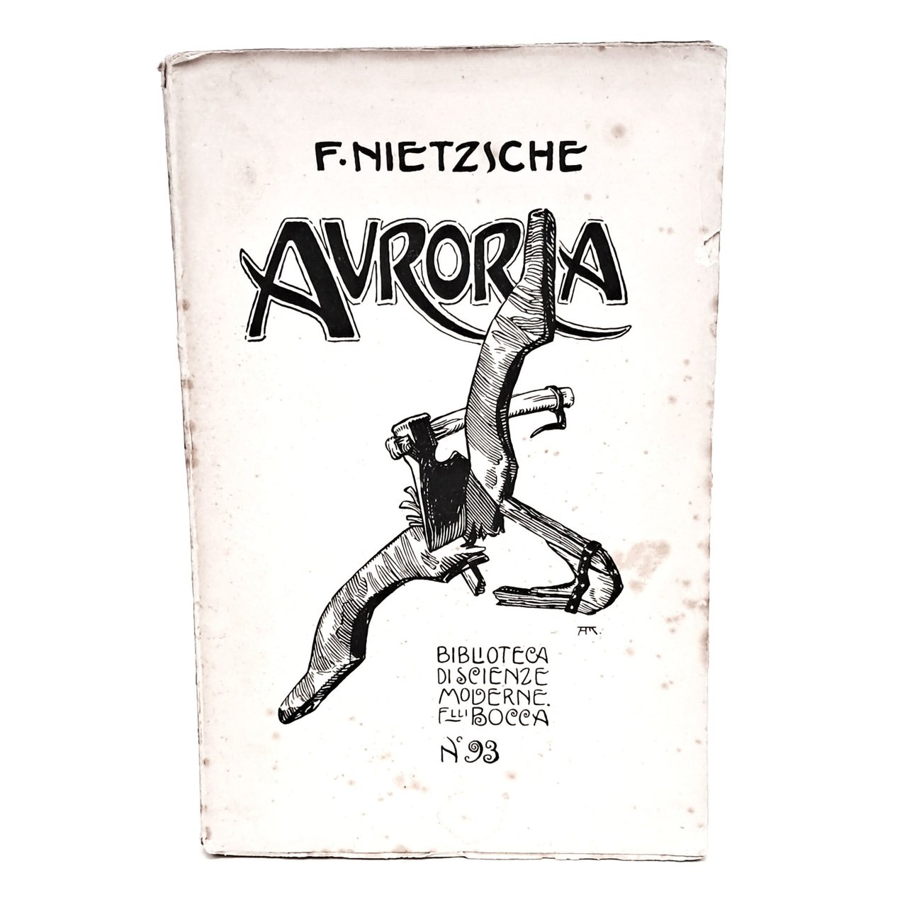 Prima traduzione italiana, raccoglie i pensieri del filosofo sui pregiudizi morali (1880-1881). L'opera si compone in totale di 575 aforismi, divisi in 5 libri. Nietzsche propone una sintesi dell'opera in una prefazione datata 1886. «Allora ho intrapreso qualcosa che non poteva essere fatto da tutti: sono sceso in profondità: ho iniziato a perforare il fondo, ho iniziato a esaminare e a minare un'antica credenza su quello che da qualche migliaio d'anni noialtri filosofi abbiamo l'abitudine di edificare come se si fosse sul terreno più solido e di continuare a riedificare anche se ogni edificio sia crollato: ho cominciato a minare la nostra fiducia nella morale [.] Con noi è giunto a compimento, se si vuole usare una formula, l'auto superamento della morale.» In brossura. Pp. 224. Fioriture.