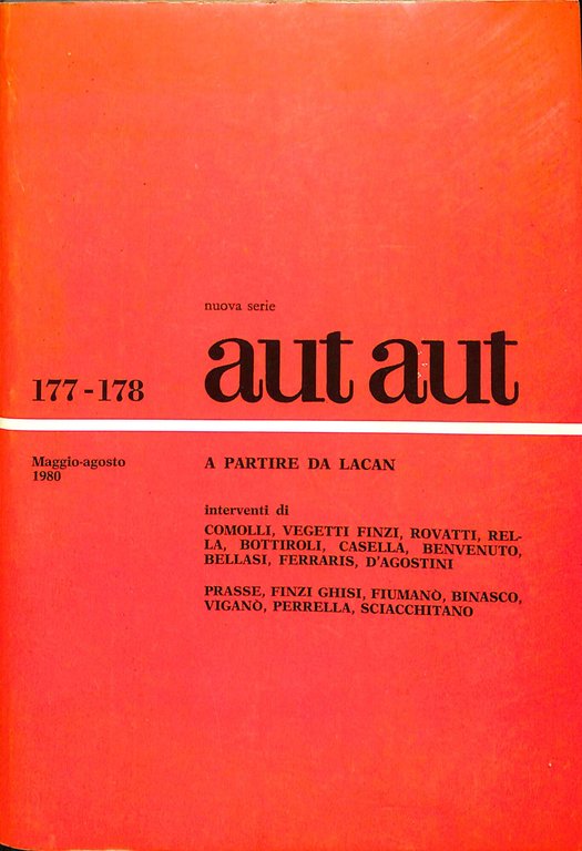 Aut aut : Rivista bimestrale fondata da Enzo Paci 177-178 maggio-agosto 1980: a partire da Lacan. 329 p.; 22,5 cm. 300 Ottimo (Fine)