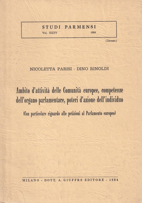 Titolo completo: Autografato! Ambito d'attività delle Comunità europee, competenze dell'organo parlamentare, poteri d'azione dell'individuo
