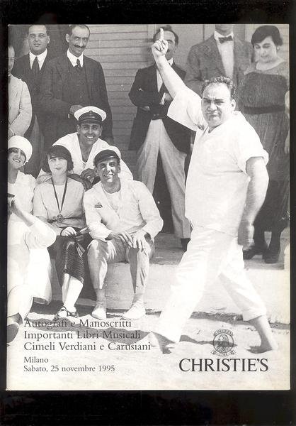 AUTOGRAFI E MANOSCRITTI. IMPORTANTI LIBRI MUSICALI.<BR>CIMELI VERDIANI E CARUSIANI.