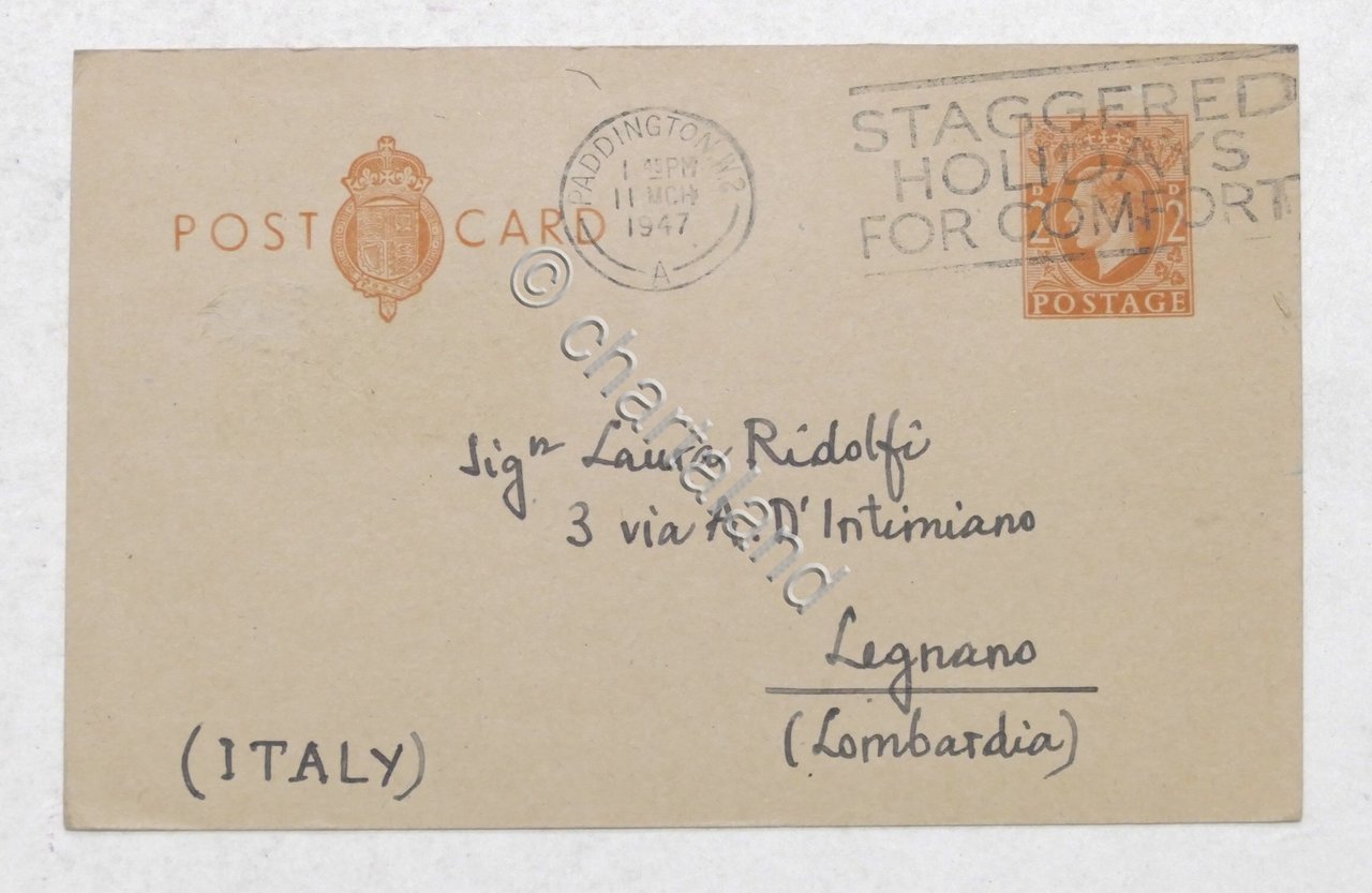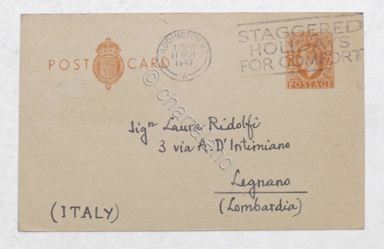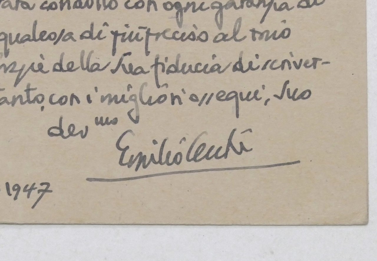 Autografo del critico letterario Emilio Cecchi su cartolina - 1947
