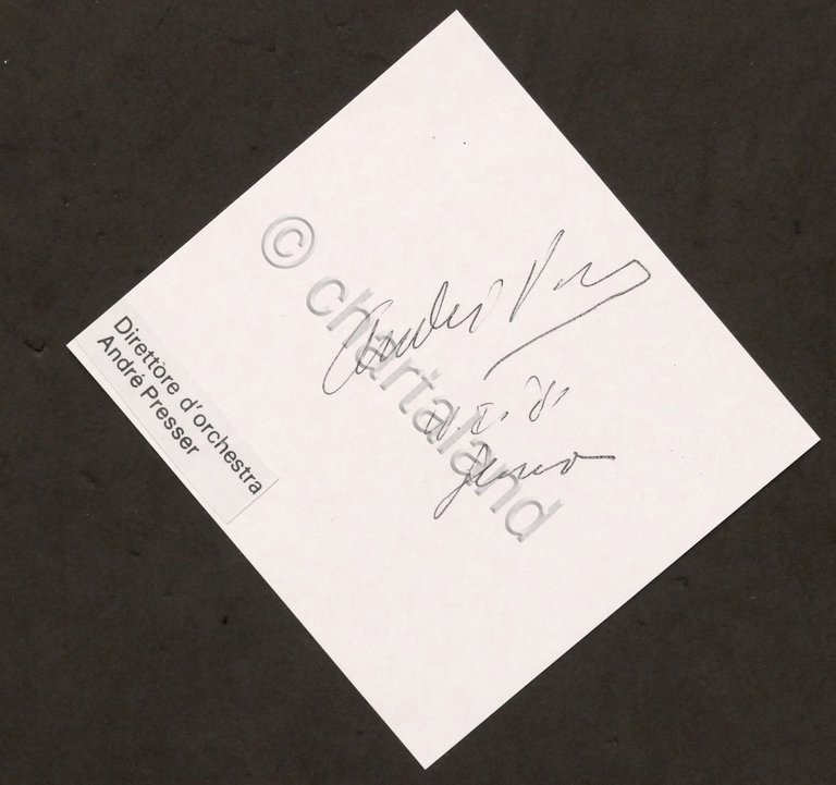 Autografo del direttore d'orchestra André, Presser su biglietto - anni '80