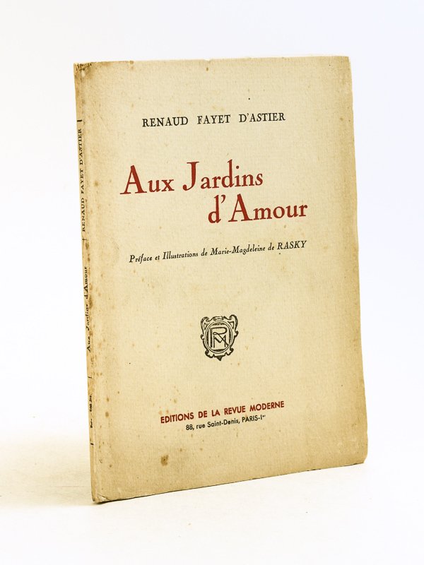 Préface et Illustrations e Marie-Magdeleine de Rasky, 1 vol. in-12 br., Editions de la Revue Moderne, Paris, 1954, 63 pp. Bel envoi de l'auteur : "Réunion de faits littéraires, les d'Aurevilly, les Lorrain, les Maeterlinck sont-ils Aux Jardins d'Amour ?". Etat satisfaisant (traces de mouill. sur couv., bon état par ailleurs)