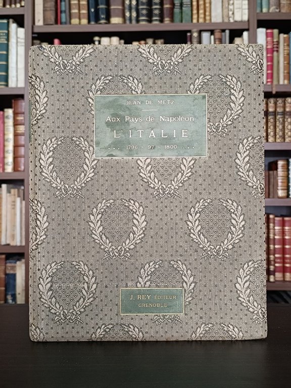 In-4° (cm. 31,8), bellissima legatura editoriale in tessuto lavorato e ornato, titolo in oro su comparti al piatto anteriore e al dorso inquadrato da filetti sempre in oro, taglio superiore dorato, risguardi decorati; conservata la brossura a stampa con una illustrazione incisa applicata al piatto anteriore e con titoli in rosso e nero; pp. [4] 152 [2] in stato molto buono; con 136 fototipie, di cui 5 panorami, 1 tavola fuori testo e 1 carta geografica; lievi fioriture sparse. Prima edizione riccamente illustrata sulle campagne napoleoniche in Italia. Esemplare molto buono. (NJ4)