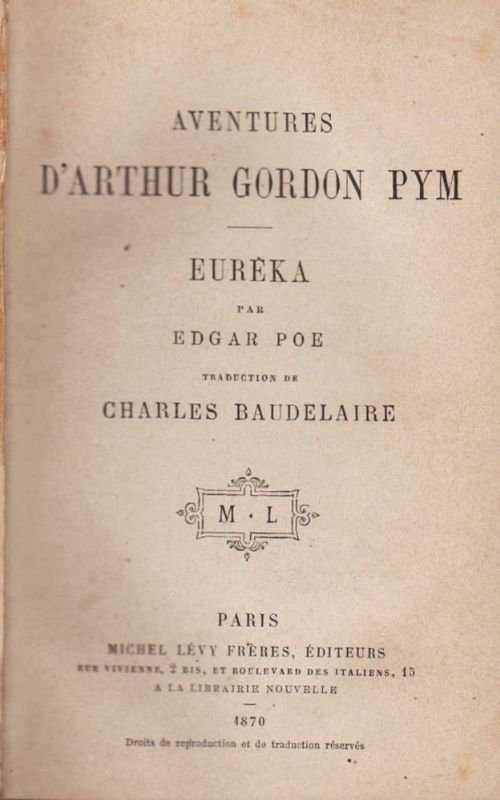 Aventures d'Arthur Gordon Pym. Euréka (.) Traduction de Charles Baudelaire.