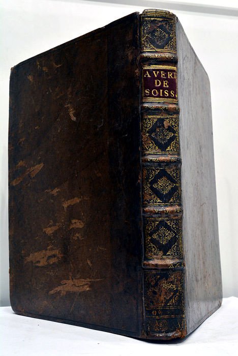 5 ouvrages en 1 volume. 1). 4 feuillets. 117 pages. (1 feuillet blanc). 2). 3 feuillets. 58 pages. 56 pages. 3). 4 feuillets. 124 pages. 4). 8 pages. 5). 4 pages. (25,5x20 Cm). Plein veau. Dos à nerfs orné. Pièce de titre en maroquin rouge,. Guirlande doré encadrant l'intérieur des plats. Reliure de l'époque. Coins et coiffes émoussés. Plats un peu frottés. Recueil d'ouvrages publiés séparément par l'homme d'Eglise et théologien antijanséniste Jean-Joseph Languet de Gergy. Ces écrits ont tous trait à la défense et à l'application des directives formulées par le Pape Clément XI dans la fameuse bulle "Unigenitus", réquisitoire contre le jansénisme et contre les "Réflexions morales" de l'oratorien Pasquier Quesnel. Figure atypique, pamphlétaire infatigable mêlé à de nombreuses controverses politico-religieuses, Languet de Gergy exerça une grande influence contre les philosophes, et combattit vigoureusement les candidatures de Montesquieu et de Voltaire à l'Académie Française, à laquelle il fut lui-même élu en 1721. Envois autographes de l'auteur sur la page de titre du premier et du second ouvrage: "De la part de l'Evêque de Soissons. A M. de Valence". Rares taches et rousseurs. Bon exemplaire.