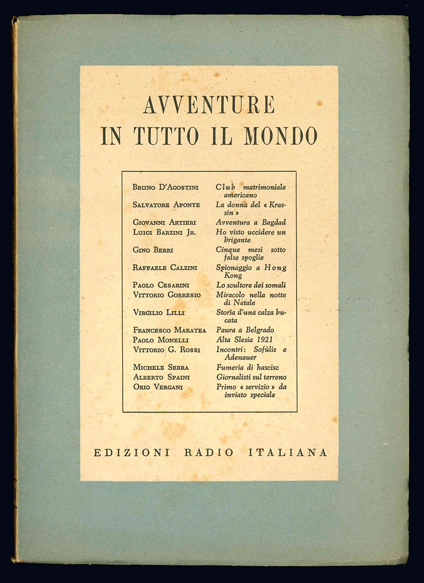 In 8vo (mm 209x148); pp. 115, [1]. Carta leggeremente ed uniformemente brunita. Copertina editoriale con lievi fioriture. Nel volume sono raccolti racconti di Bruno Agostini, Salvatore Aponte, Giovanni Altieri, Luigi Barzini Jr., Gino Berri, Raffaele Clazini ed altri.