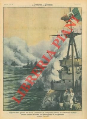 Avvistato da aeroplani nemici, un convoglio italiano emette fumo per proteggere la navigazione.