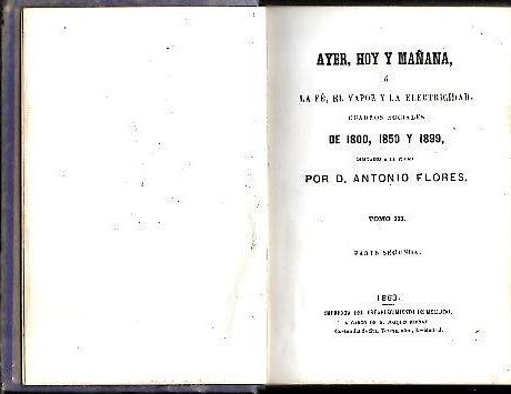 AYER, HOY Y MAÑANA, O LA FE, EL VAPOR Y LA ELECTRICIDAD. CUADROS SOCIALES DE 1800, 1850 Y 1899. TOMO III. TOMO IV. TOMO V.