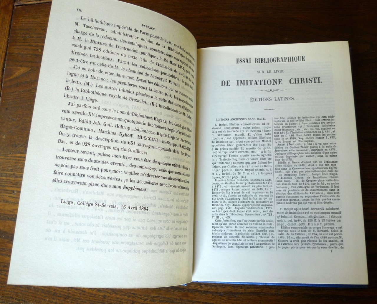 ESSAI BIBLIOGRAPHIQUE SUR LE LIVREDE IMITATIONE CHRISTIpar le R. P. Augustin de Backer,de la Compagnie de Jésus.Verlag P. Schippers N.V., Amsterdam 1966,riproduzione anastatica dell'edizione di Liegi, 1864,copertina rigida, rilegatura in tela,22,5x15,5 cm., pp.VIII-257,testo in francese,peso: g.550cod.9885CONDIZIONI DEL LIBRO: come nuovo