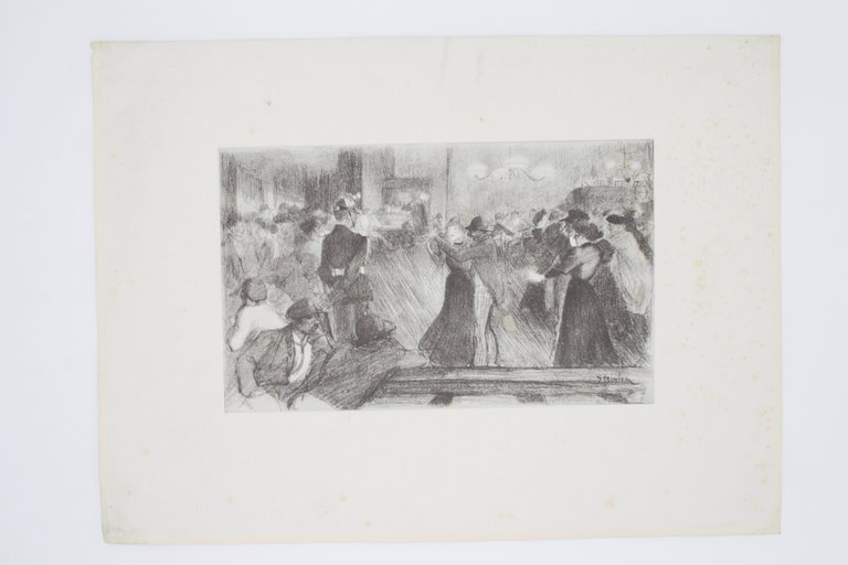 Imprimerie Champenois • pour CH. Masson • H. Piazza | Paris (Juin) 1898 | 34.50 x 21 cm | une feuille | [ENGLISH DESCRIPTION ON DEMAND] | Rare lithographie originale, exécutée par Théophile Alexandre Steinlen pour L'Estampe Moderne, série numéro 14 publiée en juin 1898. Une des 50 épreuves de grand luxe tirées sur Chine à grandes marges, signature de l'artiste et date dans la planche, timbre à sec de l'éditeur représentant un profil d'enfant en marge inférieure, contrecollée sur un feuillet de papier vélin avec au dos le tampon numéroté du tirage de luxe, quelques rousseurs. Lithographie inspirée d'un extrait de Germinie Lacerteux des Goncourt. Magnifique publication mensuelle française éditée entre mai 1897 et avril 1899, L'Estampe moderne se constitue de chromolithographies inédites qui, contrairement à d'autres revues comme Les Maîtres de l'Affiche et tel qu'il est stipulé sur les serpentes, ont été réalisées spécialement par chaque artiste pour la revue. Ce sont ainsi 100 estampes qui paraissent au total, couvrant les courants artistiques majeurs de la fin du XIXème siècle : Symbolisme, Art Nouveau, Préraphaélites, Orientalistes et Belle Epoque. Chaque livraison de quatre estampes est tirée à 2000 exemplaires vendus 3,50F et 100 sur papier Japon proposés à 10F. Henri Piazza prévoit également un tirage confidentiel de très grand luxe : 50 exemplaires sur Japon à grandes marges et 50 en noir sur Chine au prix considérable de 30F. Cette estampe d'un beau format est superbement imprimée sur l'un des plus prestigieux papiers : le Chine. « Malgré toutes ses qualités, le papier de Chine, trop inconsistant, doit sa réputation, non pas à sa propre beauté, mais bien à ses affinités particulières avec l'encre d'impression. Son tissu, lisse et mou tout ensemble, est plus apte qu'aucun autre à recevoir un beau tirage. Cette propriété fait rechercher le papier de Chine pour le tirage des gravures. » (Anatole France). L'intérêt des collectionneurs français pour les affiches artistiques s'amplifie au début des années 1890. Octave Uzanne, pour qualifier cette fièvre invente le terme d'« affichomanie ». L'affiche, à l'origine populaire et placardée dans les rues de la capitale, devient alors objet d'art et son support éphémère se fait précieux et voué à la conservation. Piazza décide de soustraire l'affiche à sa vocation publicitaire et de l'élever au rang d'œuvre d'art à part entière au même titre que le livre illustré de luxe. Il compose ainsi une collection prestigieuse d'œuvres entièrement originales, par les artistes européens les plus en vue du moment : Georges de Feure, Eugène Grasset, Henri Detouche, Emile Berchmans, Louis Rhead, Gaston de Latenay, Lucien Lévy-Dhurmer, Gustave-Max Stevens, Charles Doudelet, Hans Christiansen, Henri Fantin-Latour, Steinlen, Ibels, Engels, Willette, Henri Meunier, Evenepoël, Bellery-Desfontaines, Charles Léandre, etc. Bel exemplaire.