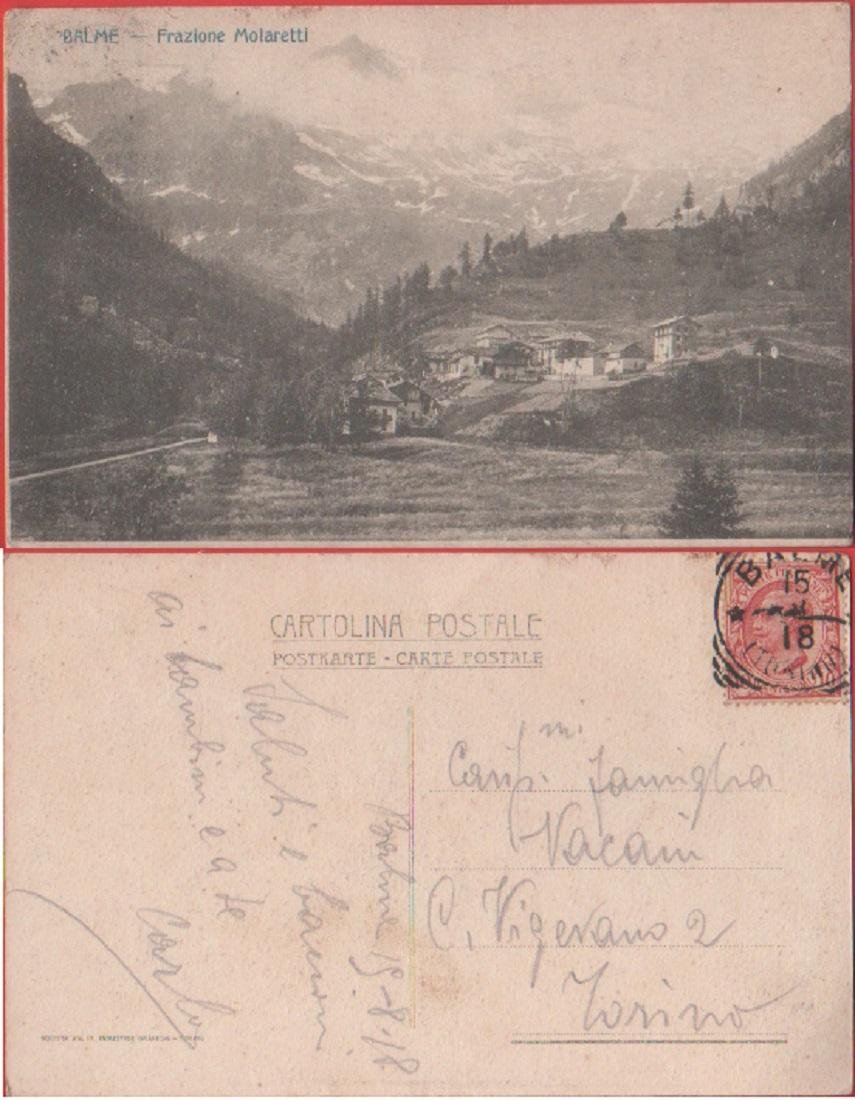 Balme (TO). Frazione Molaretti. Viaggiata 1918