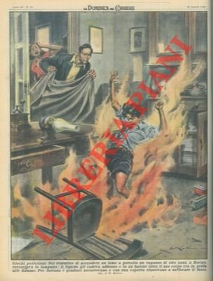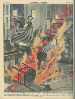 Bambino avvolto dalle fiamme a causa del liquido di un lume a petrolio cadutogli addosso; salvato dai genitori.