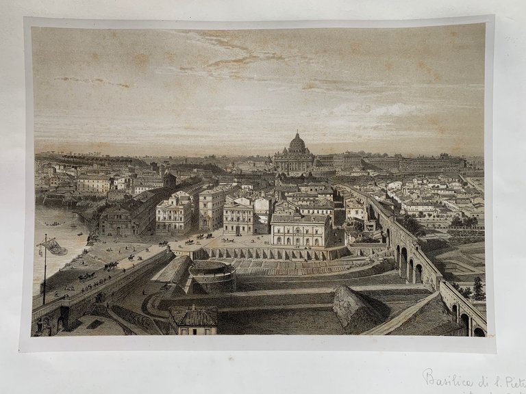 >Bella e decorativa litografia in bianco e nero, mm. 290x390 . Tratta dalla monumentale opera di Felix Benoist "Rome dans sa grandeur. Vues, monument ancient et modernes " stampata in 3 volumi, da Henri Charpentier, nel 1870.