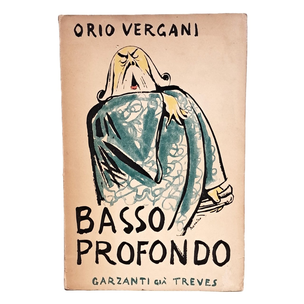 PRIMA EDIZIONE NON NUMERATA con illustrazioni di Novello. Gli ultimi libri di Orio Vergani erano raccolte di articoli di viaggio o note di taccuino in margine alla diretta impressione giornalistica. Il presente volume con arguti disegni di Novello, si compone di prose d’un genere e d’un tono congeniali al primo Vergani, quello nel quale parve a taluno di dover identificare una replica italiana di Ramon de la Sema. Senonchè la parentela era assai più apparente che sostanziale, come dimostrarono in seguito le prove impegnative di Vergani sul terreno narrativo, in romanzi e racconti costruiti coi sette sentimenti; e anche in Basso profondo, se il tono è svagato e tende al paradosso caro alle fumisterie letterarie del dopoguerra, resta pur sempre in primo piano la nota dolorosa e umana in cui l’ironia del Vergani si risolve, non bastando a contentare la sua sensibilità e la sua coscienza d’artista il semplice gioco della girandola verbale, fine a sé stessa e neppure l’ambizione d’un’etica paradossale destinata a sconvolgere potenzialmente le posizioni acquisite e le formule cristallizzate della moralità borghese. Con 41 illustrazioni di Novello. Brossura. Pp. 208. Ottime condizioni.