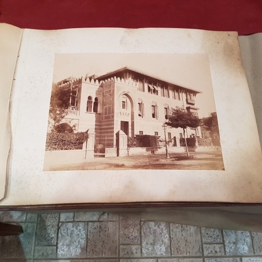 Album in-folio oblungo (cm. 39,5 x 30,5), composto da 18 foto originali applicate su cartoncino, legatura in mezza pelle con piatti in tela, cornici gometriche a secco ai piatti.