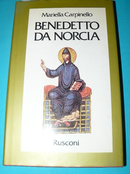 In-8°, pp. 225, una decina di tavole (raffigurazioni di momenti importanti della vita di S. Benedetto) in b/n fuori testo, tela editoriale con titolo in oro al dorso, sovraccopertina figurata a colori.
